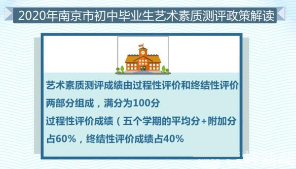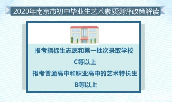 2020年起,江蘇省初中畢業(yè)生藝術(shù)素質(zhì)測評結(jié)果將計入中考成績,南京市教育局在2017年公布了南京初中畢業(yè)生藝術(shù)素質(zhì)測評試行方案,又在2020年出臺了該方案的官方解讀,為2020屆及之后的初三畢業(yè)生提供參考。