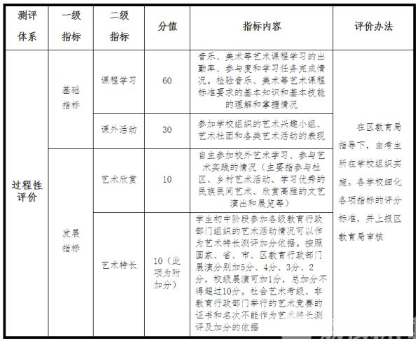 2.2022屆初中應(yīng)屆畢業(yè)生,組織實施初中生藝術(shù)素質(zhì)過程性評價和終結(jié)性評價,過程性評價等級與中考錄取掛鉤,終結(jié)性評價成績不計入學生中考總分,作為對各地各校藝術(shù)教育考評依據(jù)。