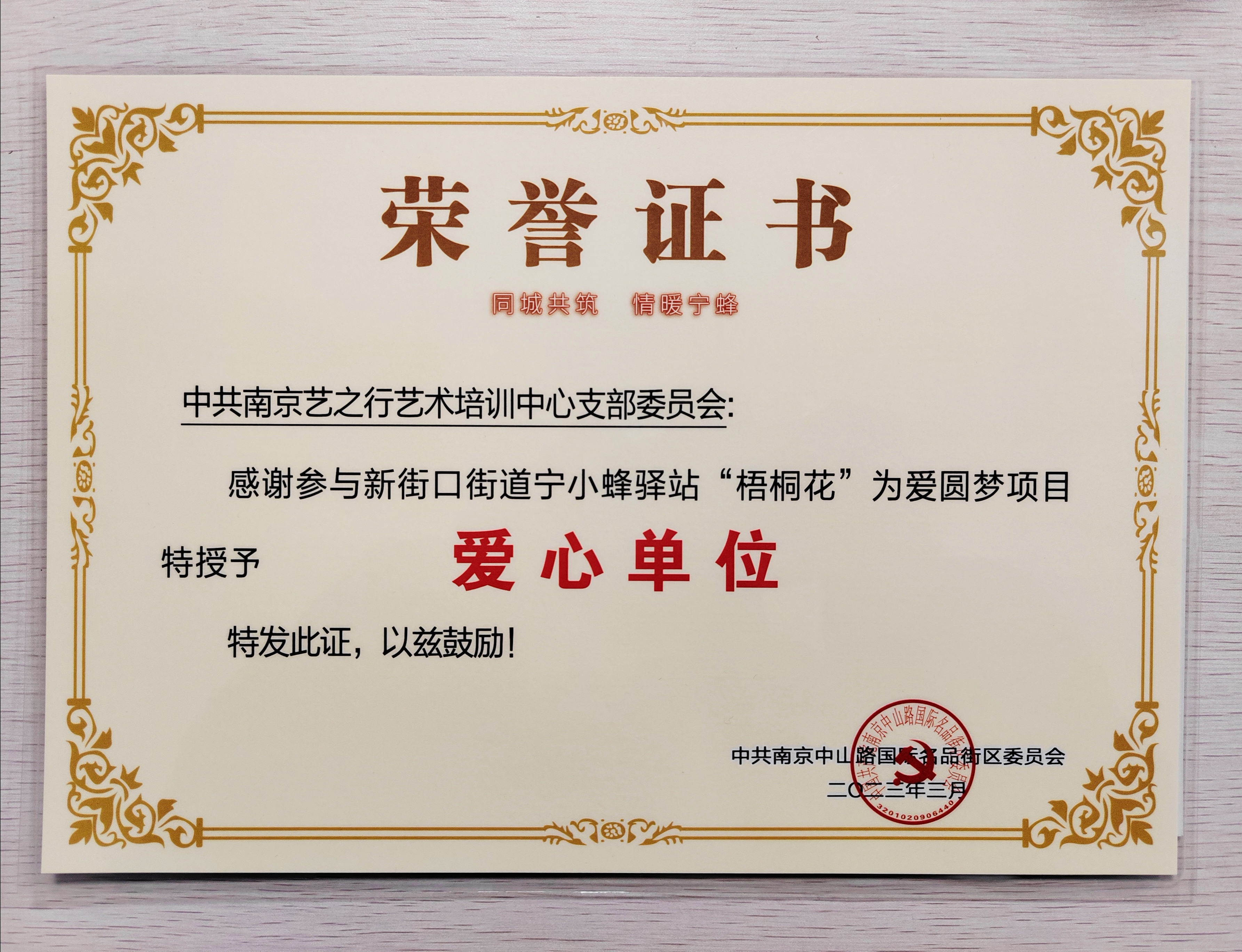 2023年3月3日,在學(xué)雷鋒紀(jì)念日來(lái)臨之際,玄武區(qū)新街口街道黨工委開(kāi)展“烽”火相傳·與“蜂”同行暨“梧桐花”寧小蜂黨建愛(ài)心聯(lián)盟成立儀式。藝之行品牌部部長(zhǎng)王輝代表藝之行參與本次成立儀式,并作為寧小蜂愛(ài)心單位上臺(tái)領(lǐng)獎(jiǎng)。
